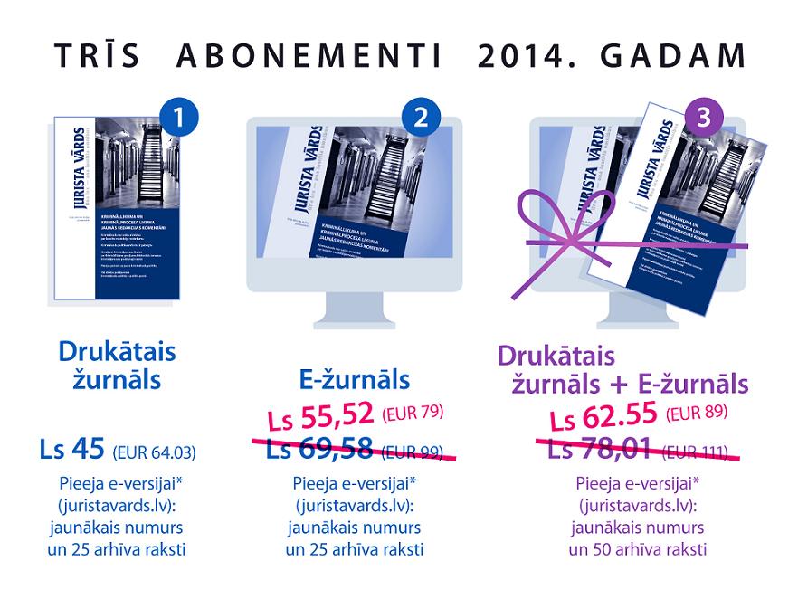 Tādēļ turpmāk piedāvājam trīs dažādus žurnāla "Jurista Vārds" abonementus: drukātais, e-žurnāls (jauns piedāvājums) un komplekts (jauns piedāvājums, kas izdevīgs birojiem un iestādēm)!