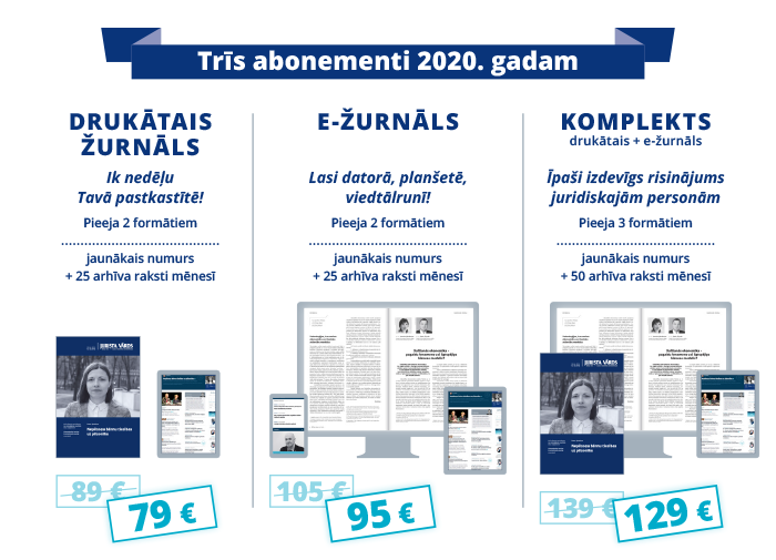 Žurnāla 2020. gada abonēšanas maksai 10 EUR atlaide tiek piešķirta tikai laikā no 1. līdz 31. oktobrim.